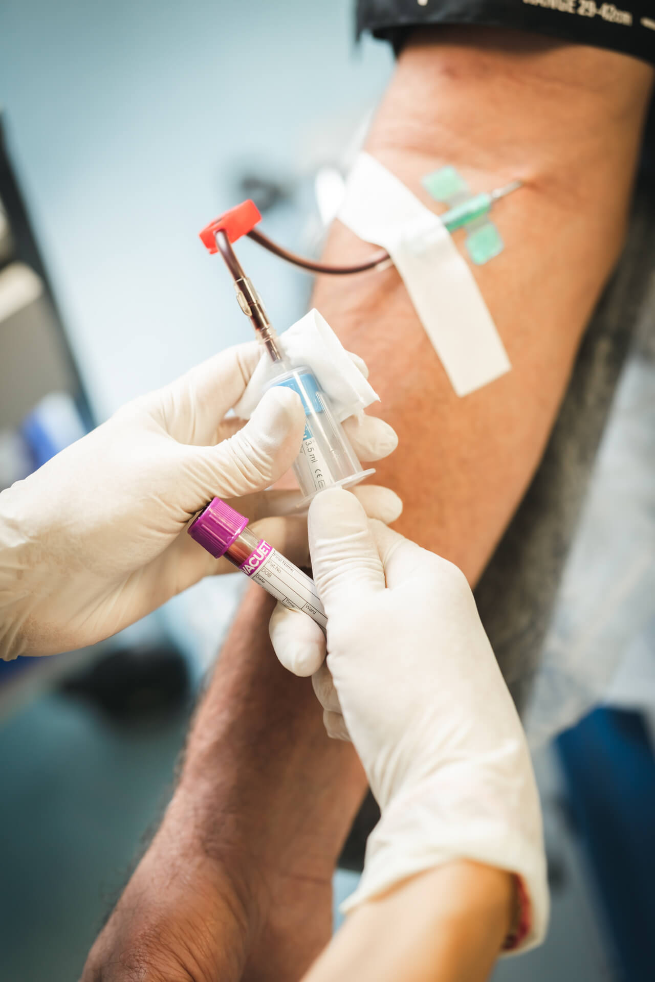 Vor Deiner ersten und nachfolgend jährlich, bzw. nach einer 6-monatigen Spendepause erfolgt eine umfassende körperliche Untersuchung durch unsere Spendeärzt:innen. Bei jeder Spende gibst Du auf Deinem persönlichen Fragebogen an, wie es Dir heute und seit der letzten Spende geht. Beim anschließenden Gesundheits-Check messen wir Deine Vitalparameter um sicherzugehen, dass eine Spende möglich ist.